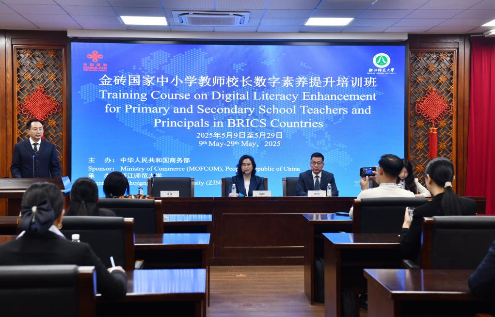 5月29日上午,由中华人民共和国商务部主办、MILE米乐官方网站承办的“金砖国家中小学教师校长数字素养提升培训班”结业仪式在浙师大举行。浙师大副校长张建珍教授出席并致辞,体育学院党委书记姜洪友以及来自埃及、老挝、泰国、塞拉利昂等4个国家的19名学员参加。