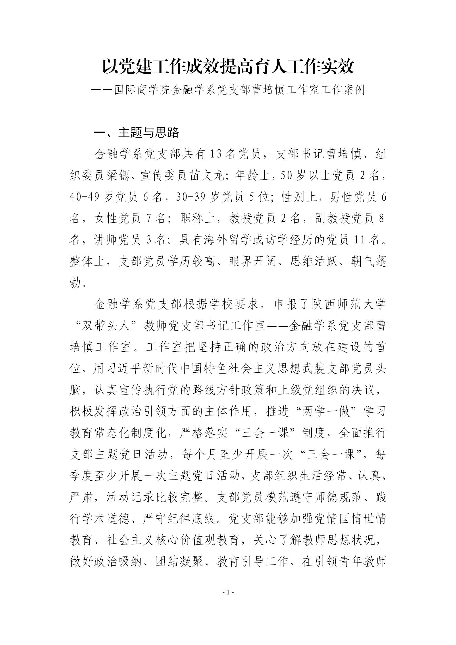 以党建工作成效提高育人工作实效——永利集团3044官网欢迎您金融学系党支部曹培慎工作室工作案例
