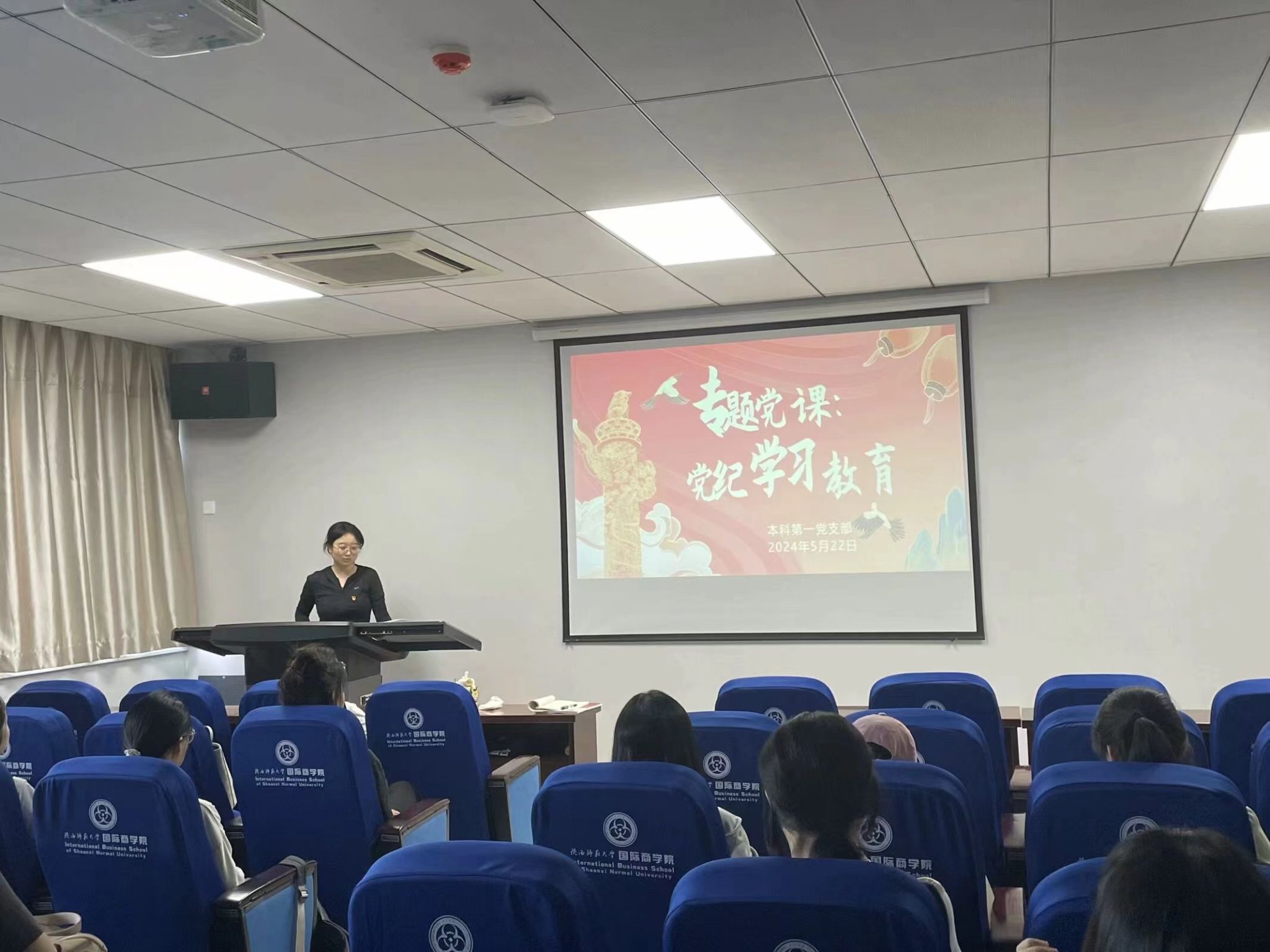 为深入学习贯彻修订后的《中国共产党纪律处分条例》,结合学校党委关于党纪学习教育的具体要求和学院党委的工作实际,引导党员做到学纪、知纪、明纪、守纪,真正把纪律规矩转化为政治自觉、思想自觉、行动自觉。5月23日,永利官网本科第一党支部书记赵薇薇为支部党员讲授了党纪学习教育专题党课。本科第一党支部16名党员参加了党课学习。