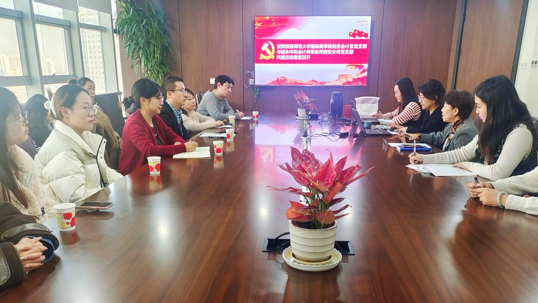 2024年12月31日下午,财务与会计系党支部与信永中和西安分所党支部开展题为“党纪学习教育与会计法解读”的党支部共建活动。学院副院长杨博、财务与会计系党支部任海云、郭玉晶、仇萌三位老师,会计专硕第二党支部与财务管理专业第五党支部学生成员参加活动。