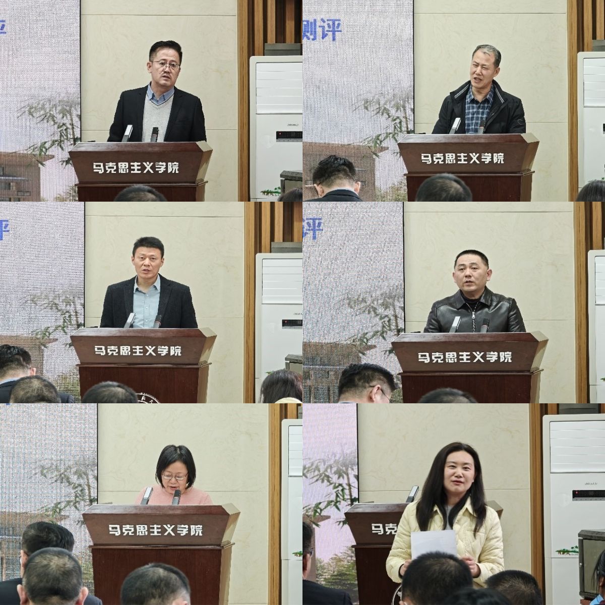 会议第一阶段为领导干部述职述廉及民主测评,由党委书记思培峰主持。思培峰首先报告了领导班子民主生活会情况,随后学院领导班子成员依次进行述职述廉报告,全体教职工对领导班子和成员进行了民主测评。