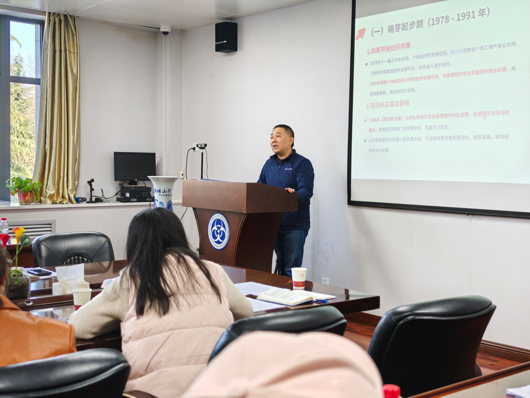 尹海员从“改革开放以来我国民营企业发展历程与政策扶持”“习近平总书记在民营企业座谈会上的重要讲话”“从习近平总书记的重要讲话中看我国民营经济未来”等三个方面作了分享与阐述。他讲到,习近平总书记的重要讲话充分肯定了民营经济取得的重大成就和为国家经济发展作出的重要贡献,坚定了民营企业家信心,为民营企业发展注入了“强心剂”。他希望通过此次分享,能帮助中心组成员深入学习党的理论知识和时事热点,提高党员领导干部政治素质和思想觉悟,从而更好地指导日后实践工作。