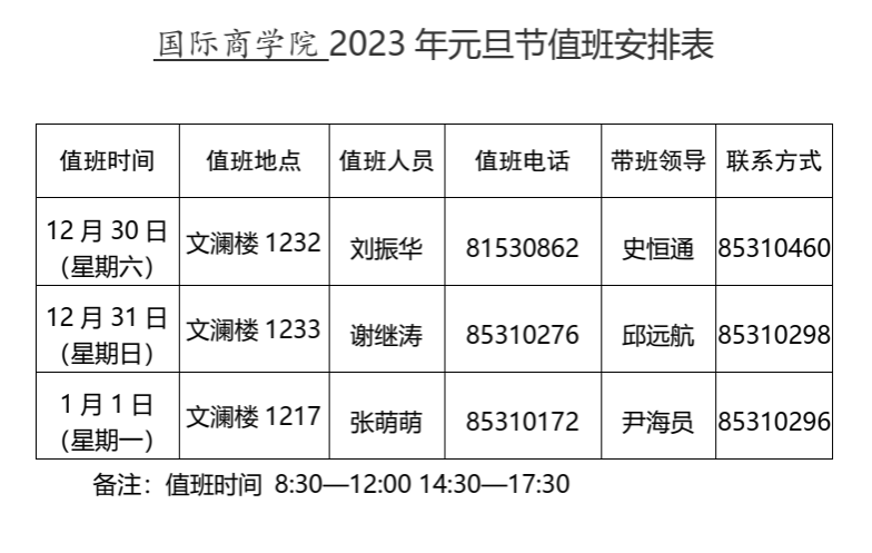 永利集团3044官网欢迎您2023年元旦值班安排表